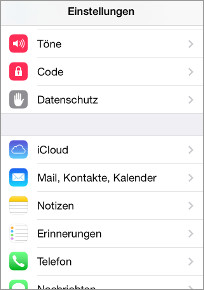 - Öffnen Sie im ersten Schritt die Einstellungen Ihres iPhones, wählen sie anschließend den Punkt Mail, Kontakte, Kalender aus (Abbildung 1).