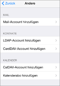 - Gehen Sie auf "Account hinzufügen" , wählen dort den Eintrag "Andere" und dann "Mail-Account hinzufügen". (Abbildung 2)