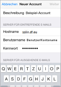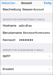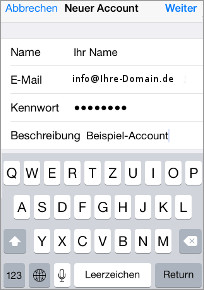 Beschreibung: Vergeben Sie eine Beschreibung für den Account auf Ihrem iPhone/iPad. Die Beschreibung ist frei wählbar. -