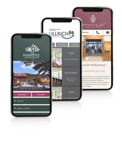 Besucht ein Gast Ihre Internet-Adresse www.ihr-name.de mit einem mobilen Gerät wird dies automatisch erkannt und der Besucher wird umgehend auf Ihre mobile Webseite umgeleitet. Es ist vorab kein Download aus einem Store nötig!